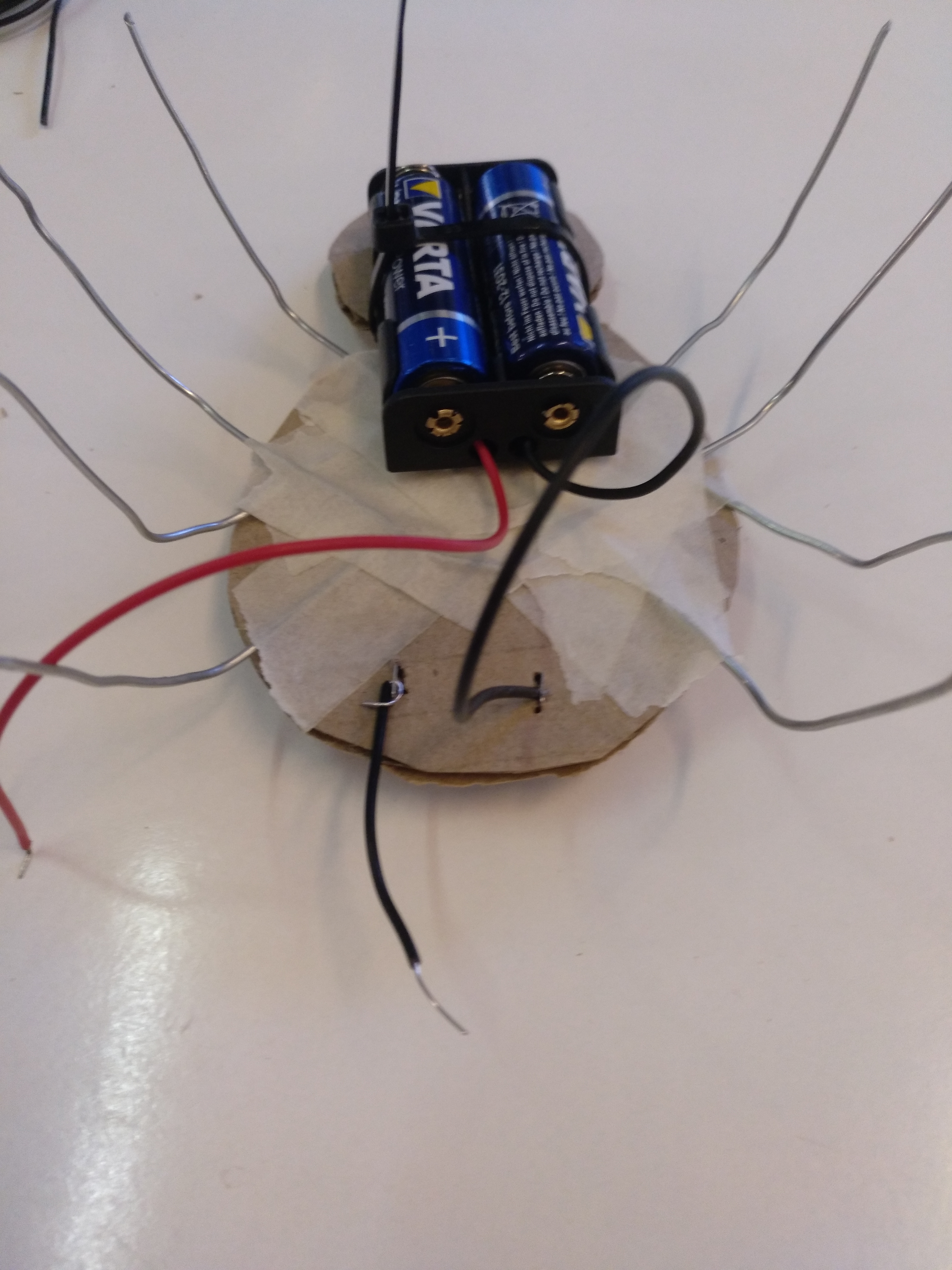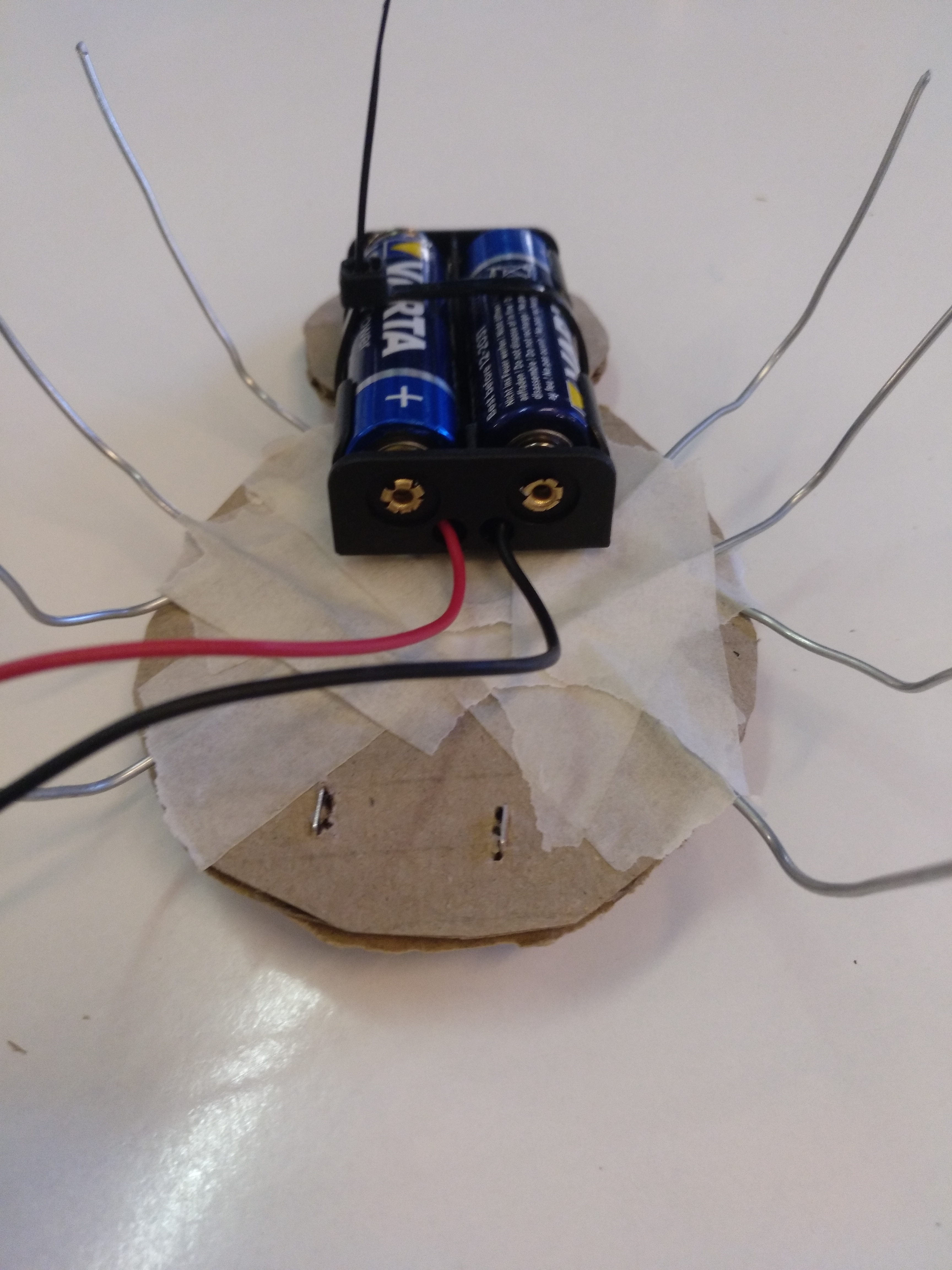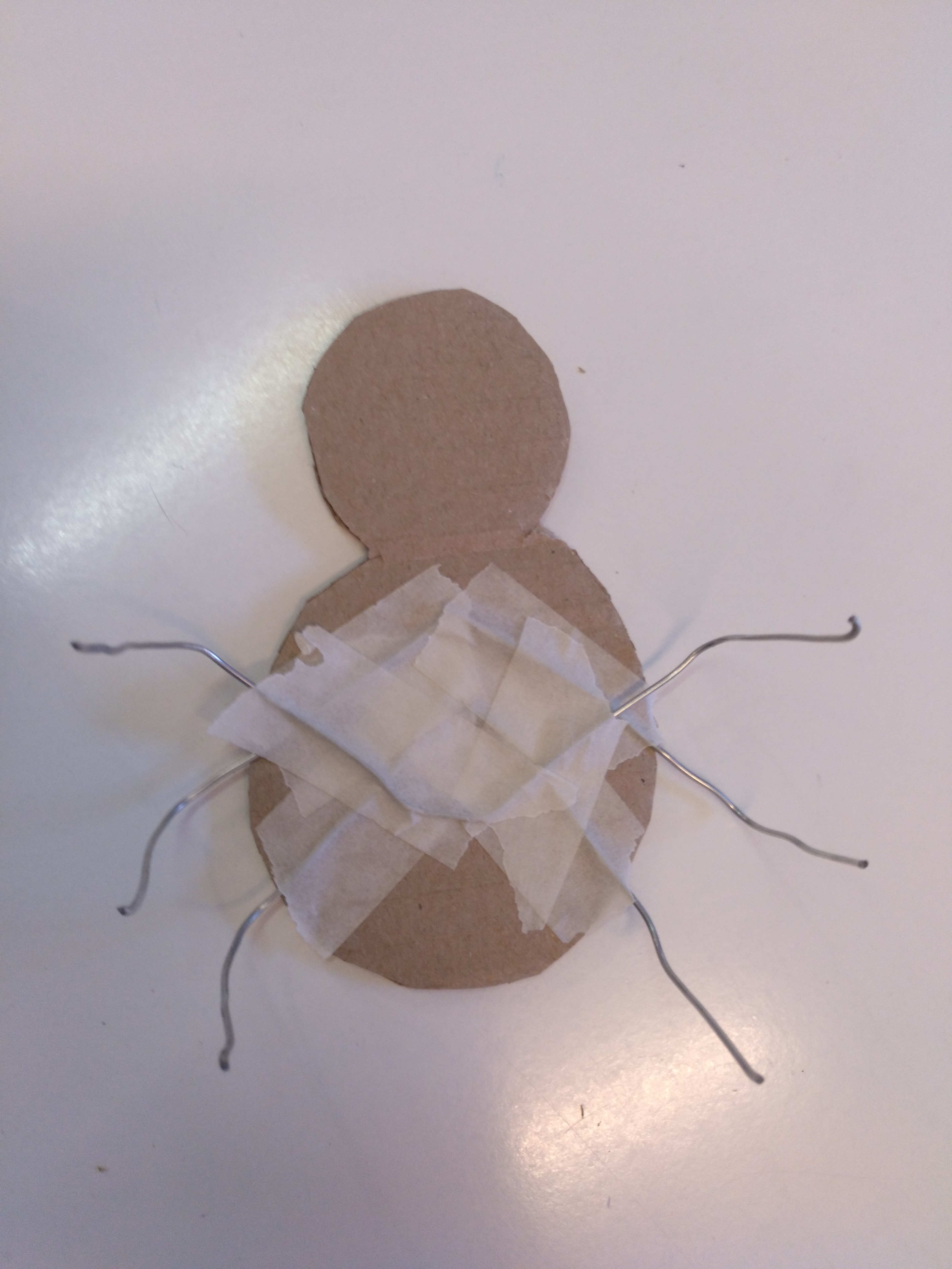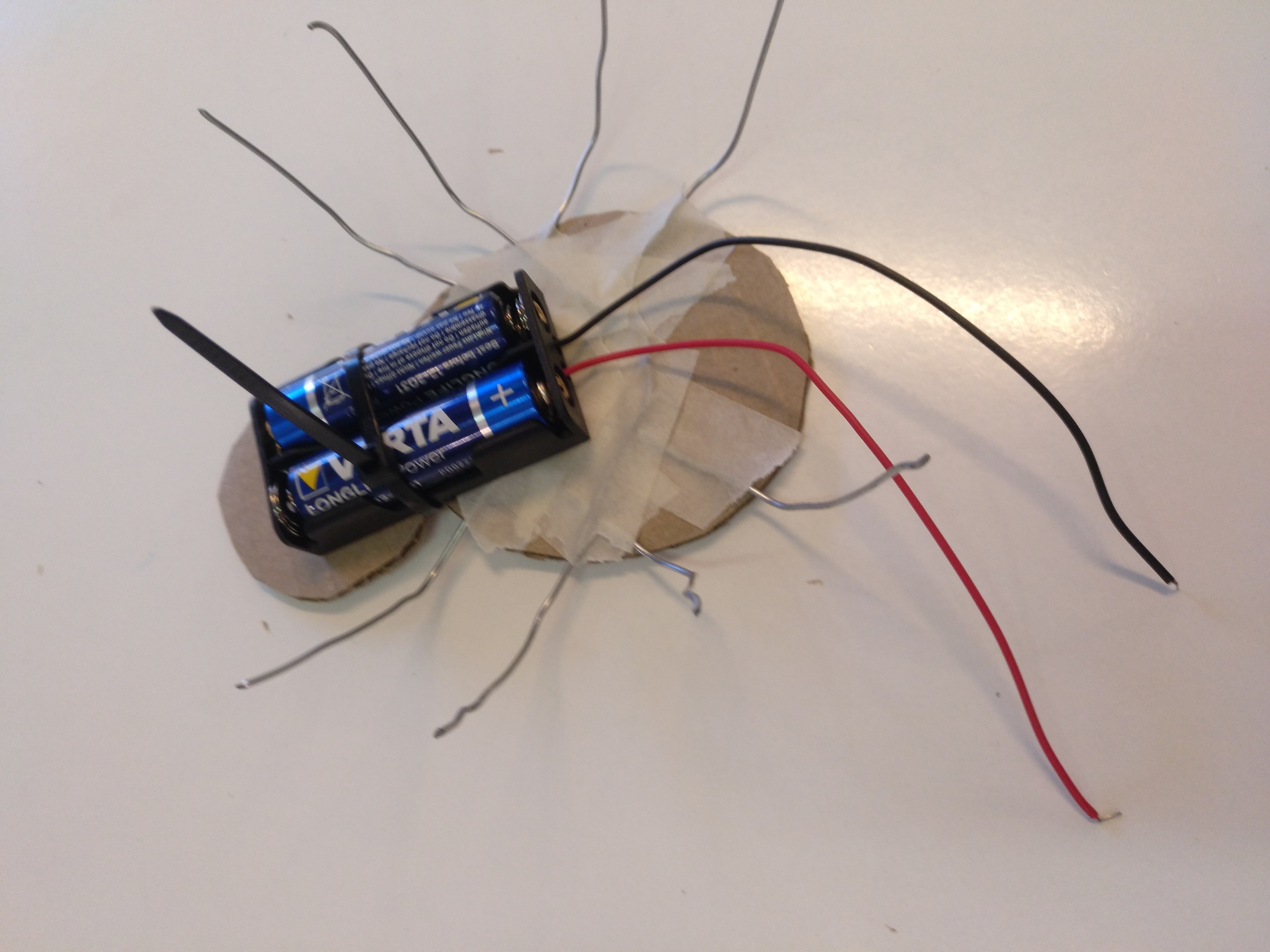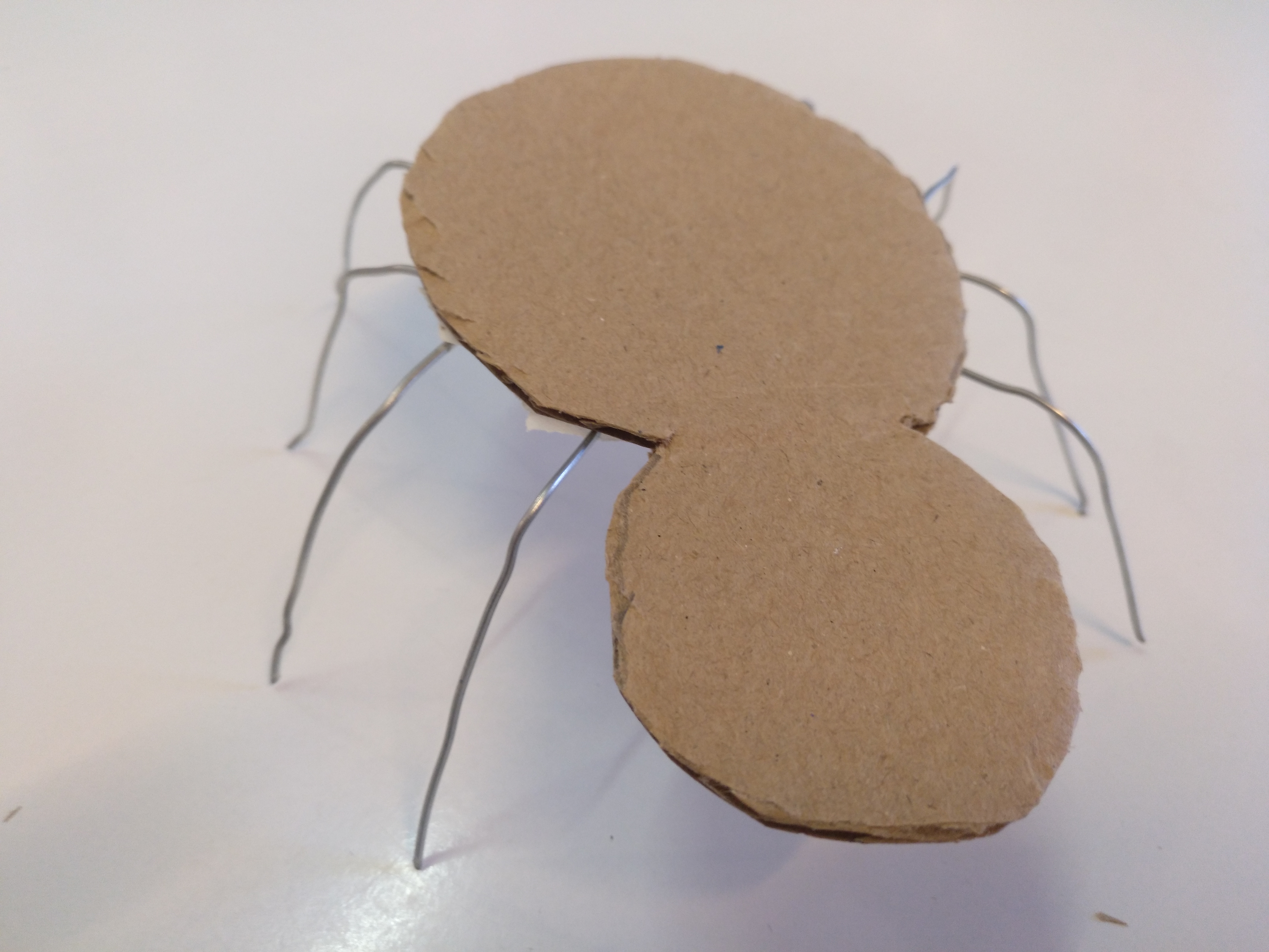 Enganxem els 4 filferros. Quan estiguin posats deformem les potes perquè toquin totes a terra.