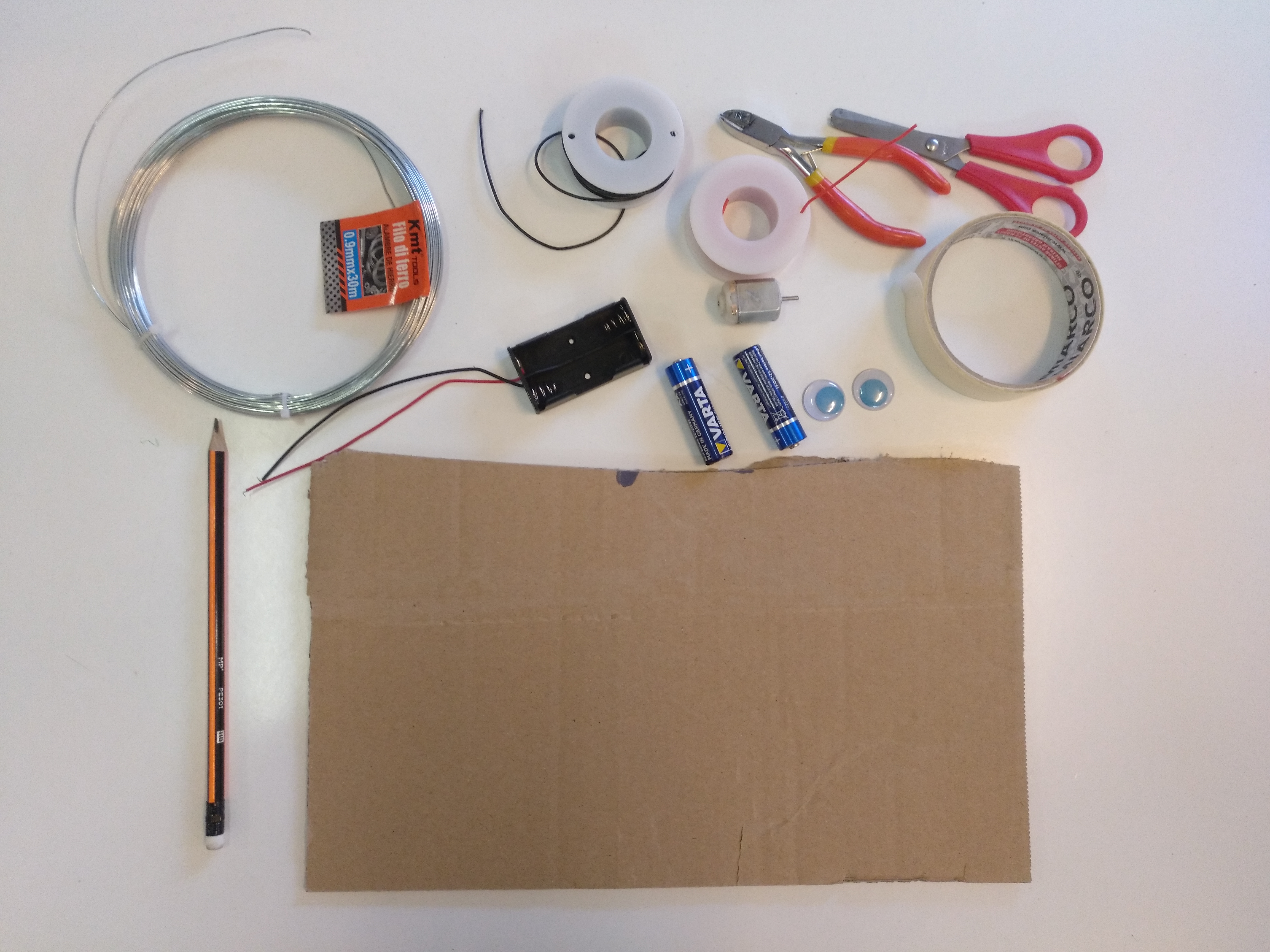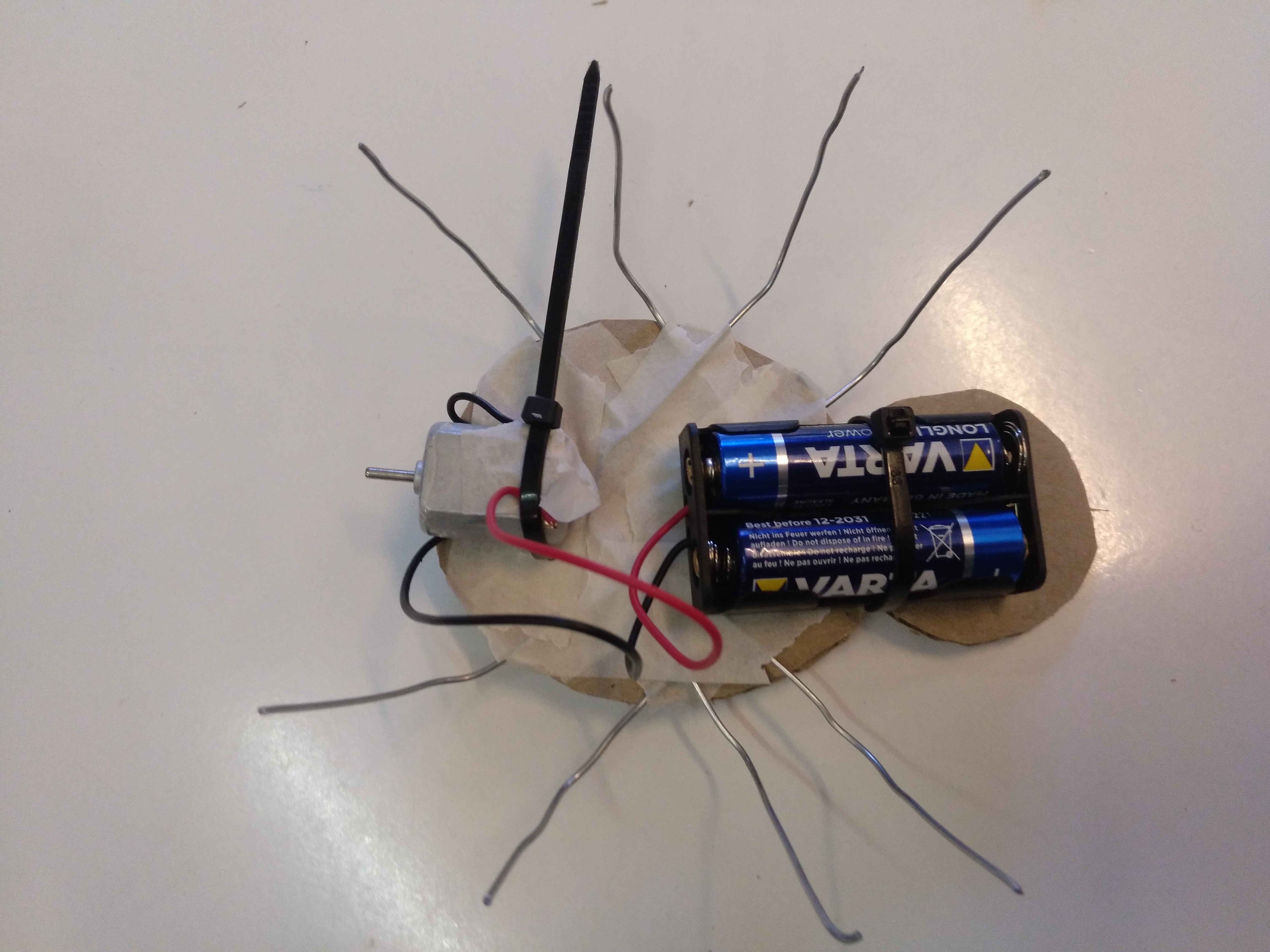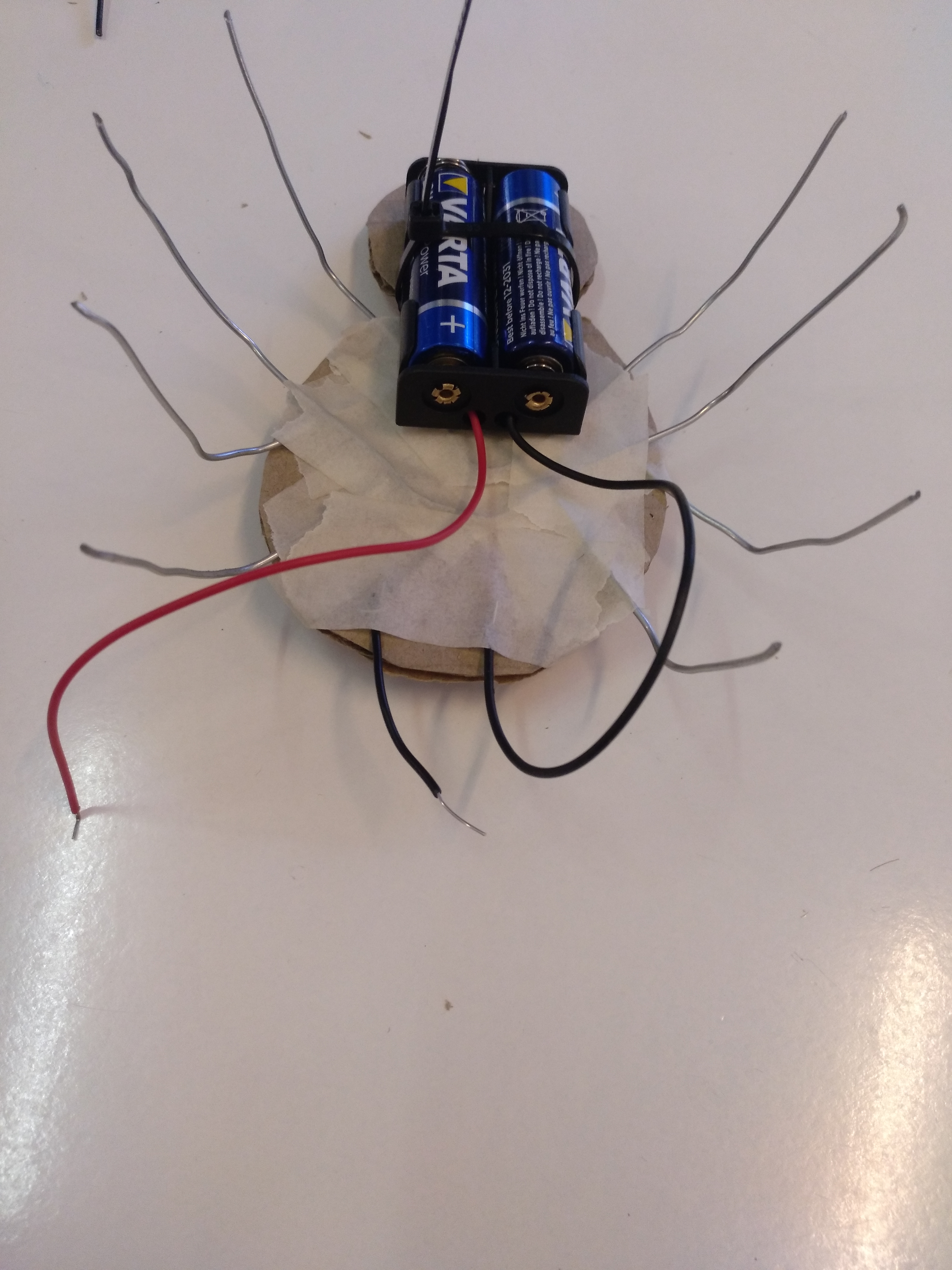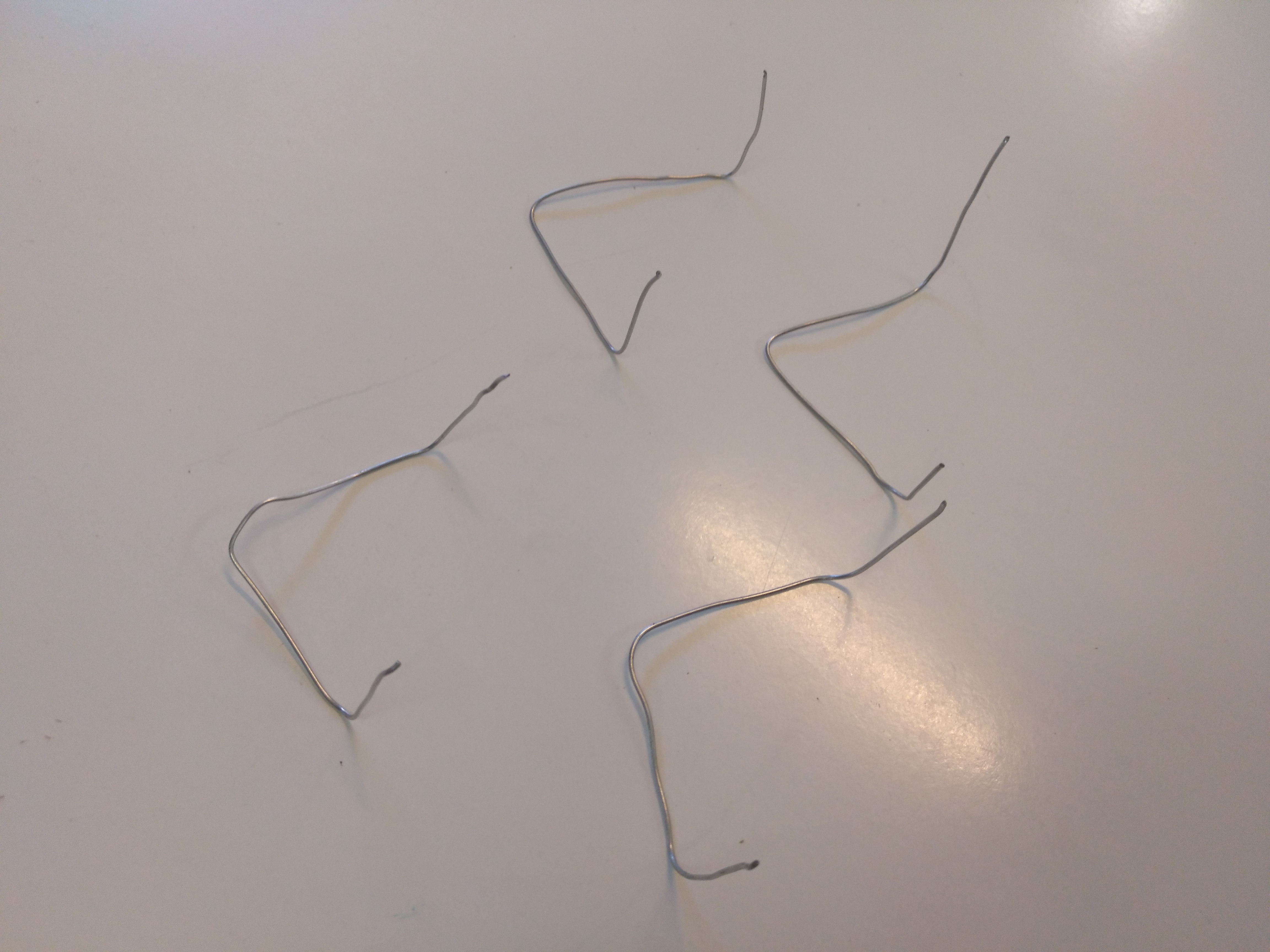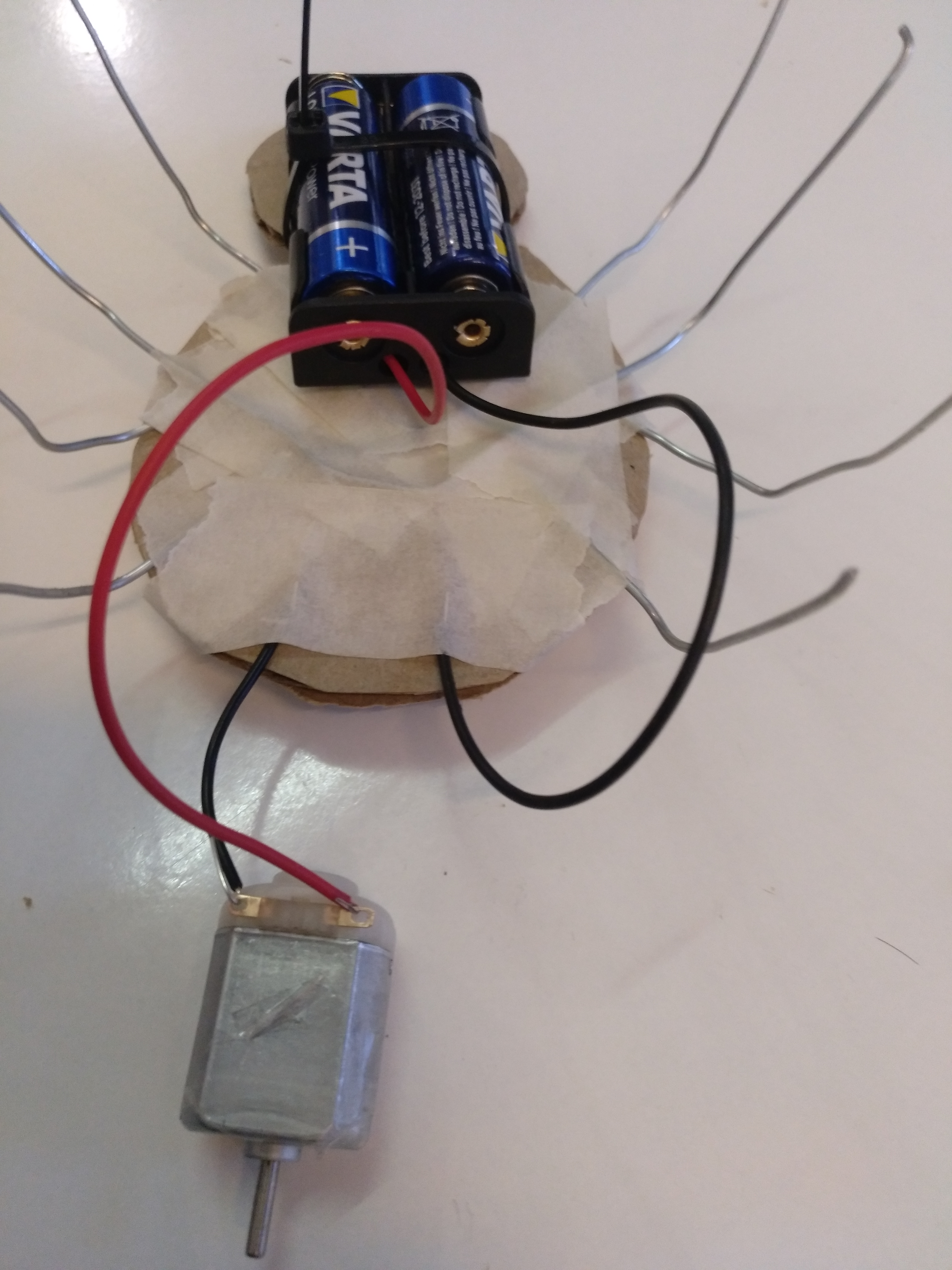 Enganxem els 4 filferros. Quan estiguin posats deformem les potes perquè toquin totes a terra.
