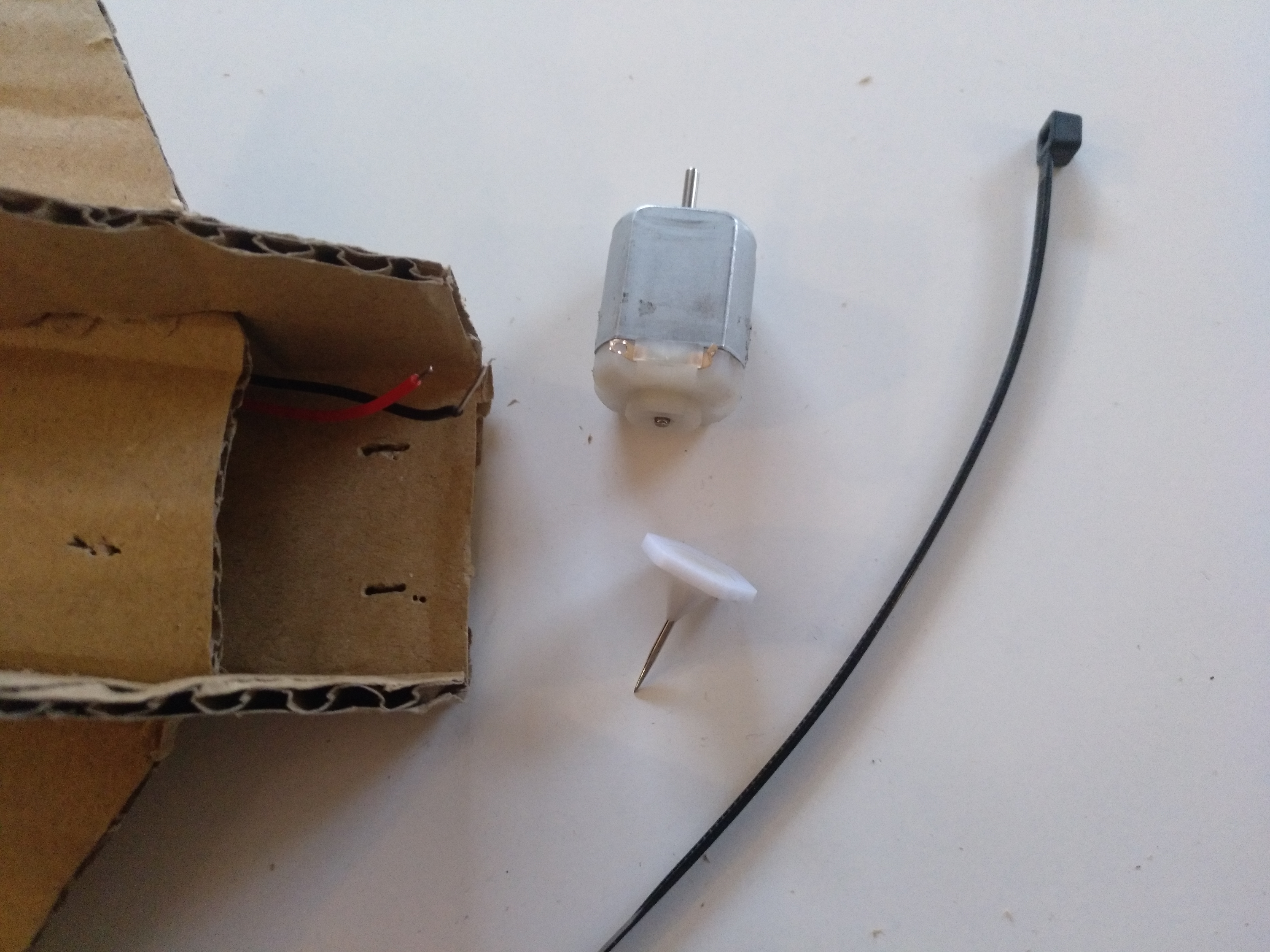Col·loquem el motor amb una brida amb l'ajuda d'una xinxeta o punxó