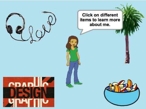1. Presentem als infants el concepte de Collage interactiu, un projecte Scratch que representa aspectes d'un mateix a través de personatges sobre els que es va fent clic. Per ajudar a què entenguin el concepte, es pot deixar que mirin els projectes de l'estudi About me (en anglès) o Sobre mi (en castellà).