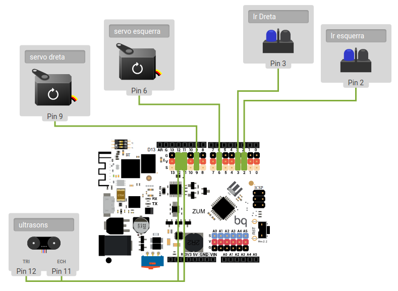 - Ultrasons: 11 (echo), 12 (tri)